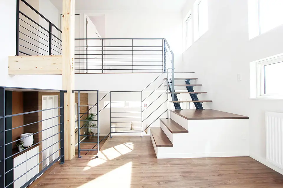 壁や扉を減らして空間を縦に活用するため、限られたスペースでも開放感のある広々とした家になります。さらに窓や段差を工夫することで、光が奥まで届く日当たりの良い空間を作ることができます。